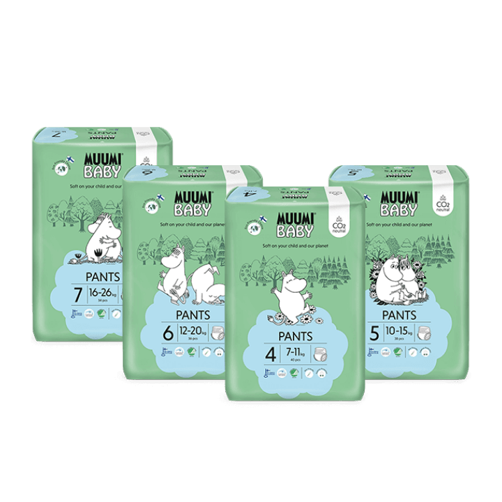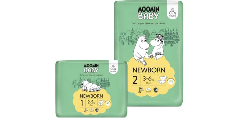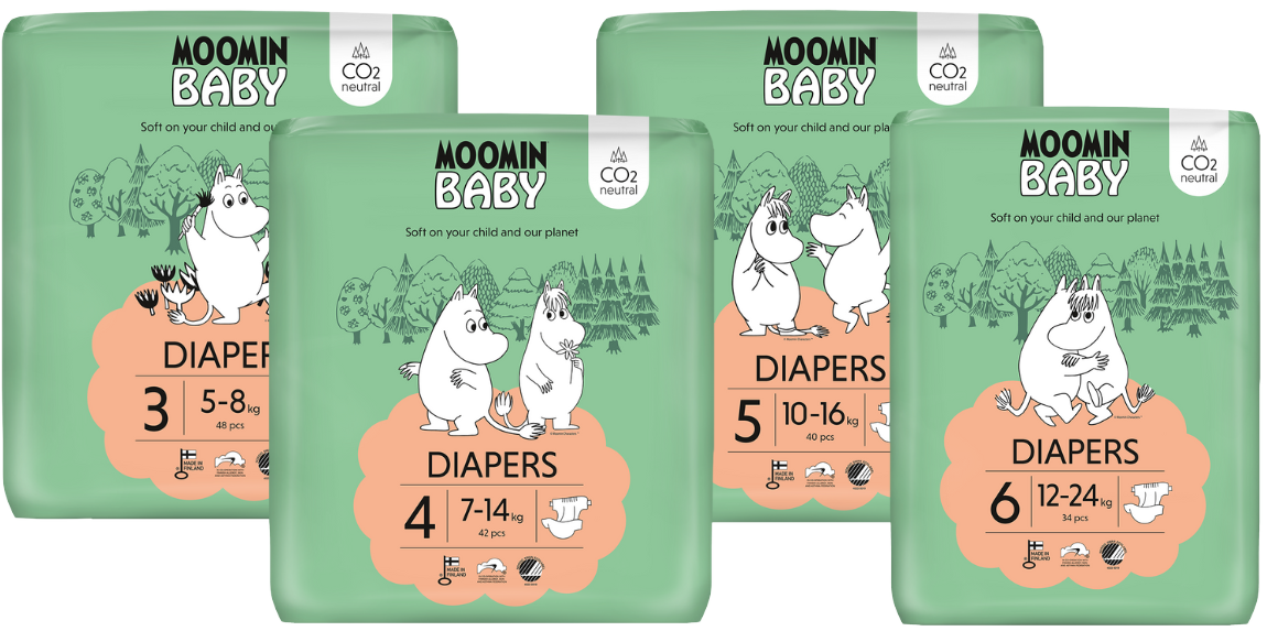 At Moomin Baby, we focus not only on our children’s future, but also on making families’ everyday lives easier by providing quality, practical and worry-free baby diapers. Our story started with the sensitive skin of our firstborn baby, who needed a particularly gentle and safe diaper. Carbon-neutral diapers are still made today by our family, using environmentally responsible and clean raw materials in Finland’s only diaper factory in Tammisaari.